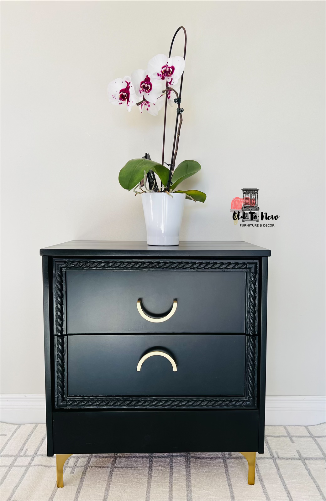 Modern Gold Legs 2-Drawer Storage Black Nightstand