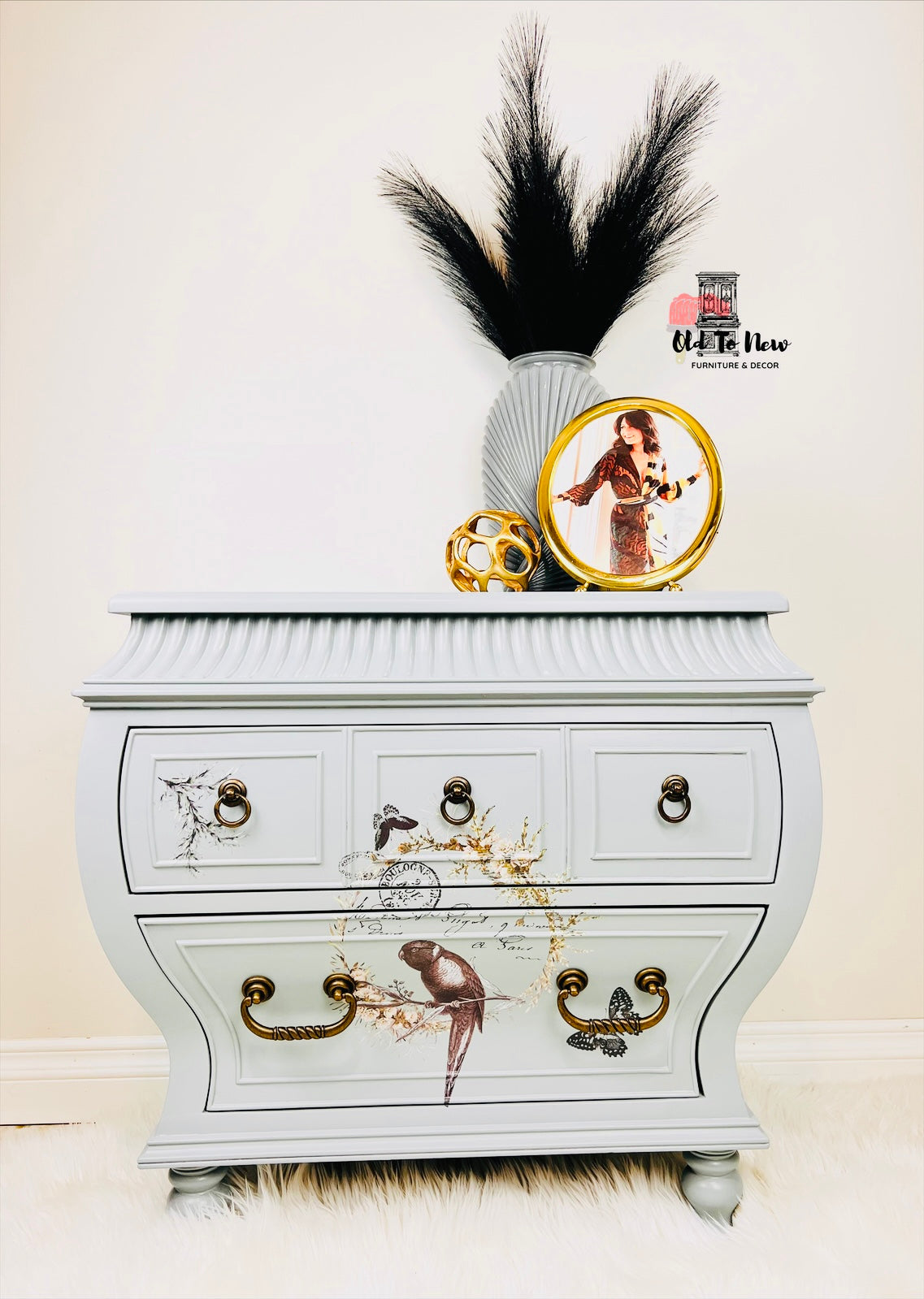 Carved and Detailed 2 Drawer Bombay Chest Painted Grey by Old to New Furniture & Decor