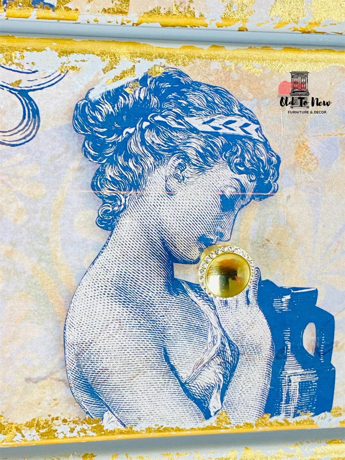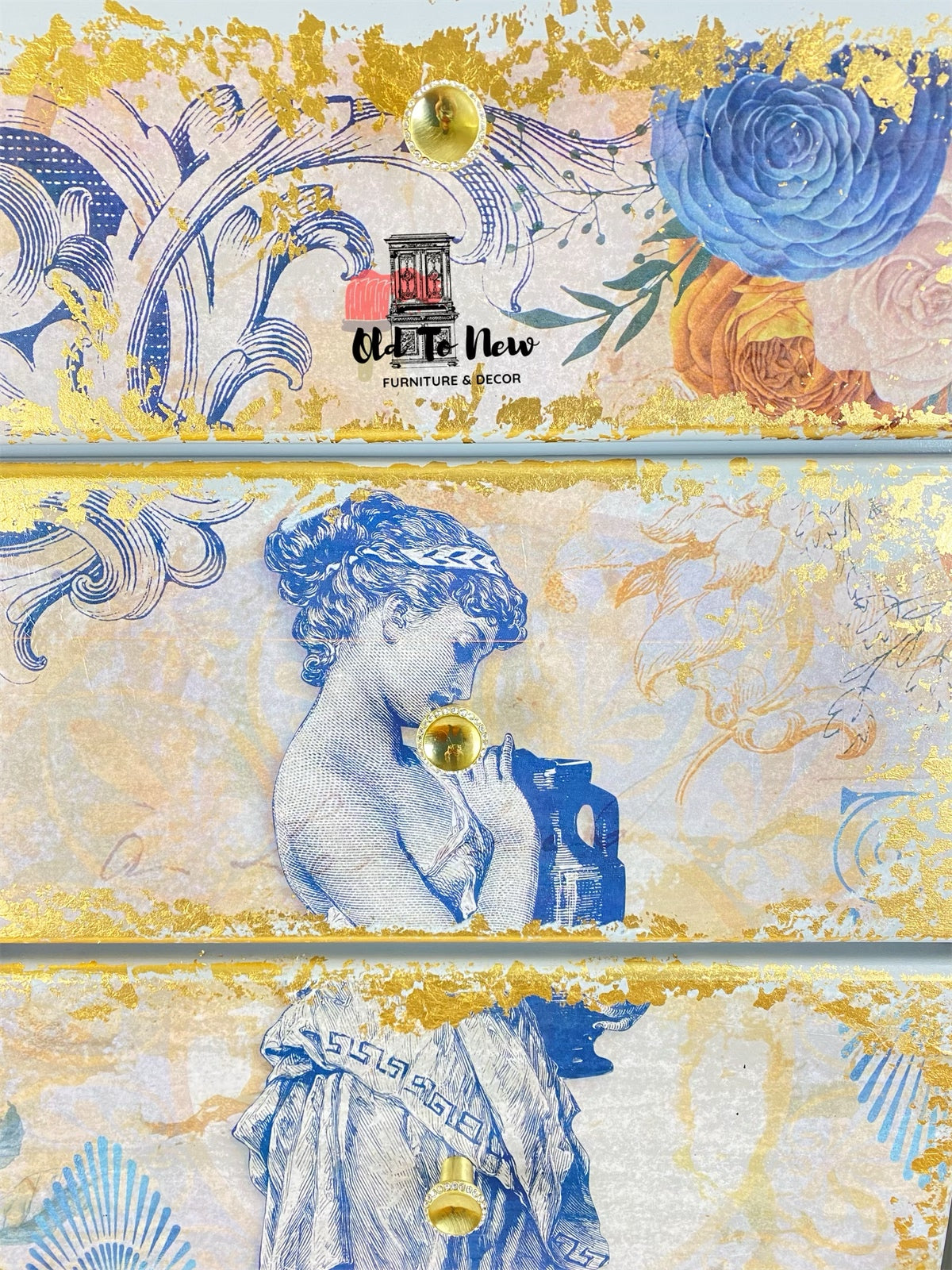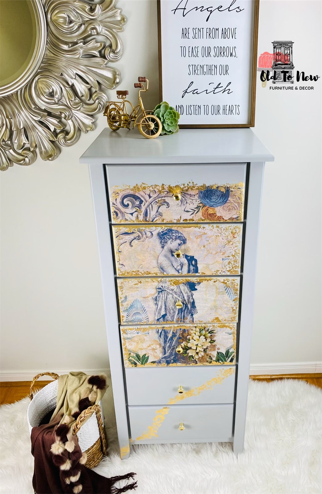 Spectacular 6 Drawer Lingerie Dresser Decoupaged and Painted Grey with Fusion Mineral Paint and Gold Leafed