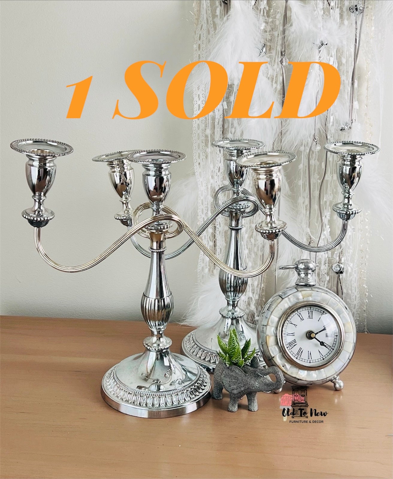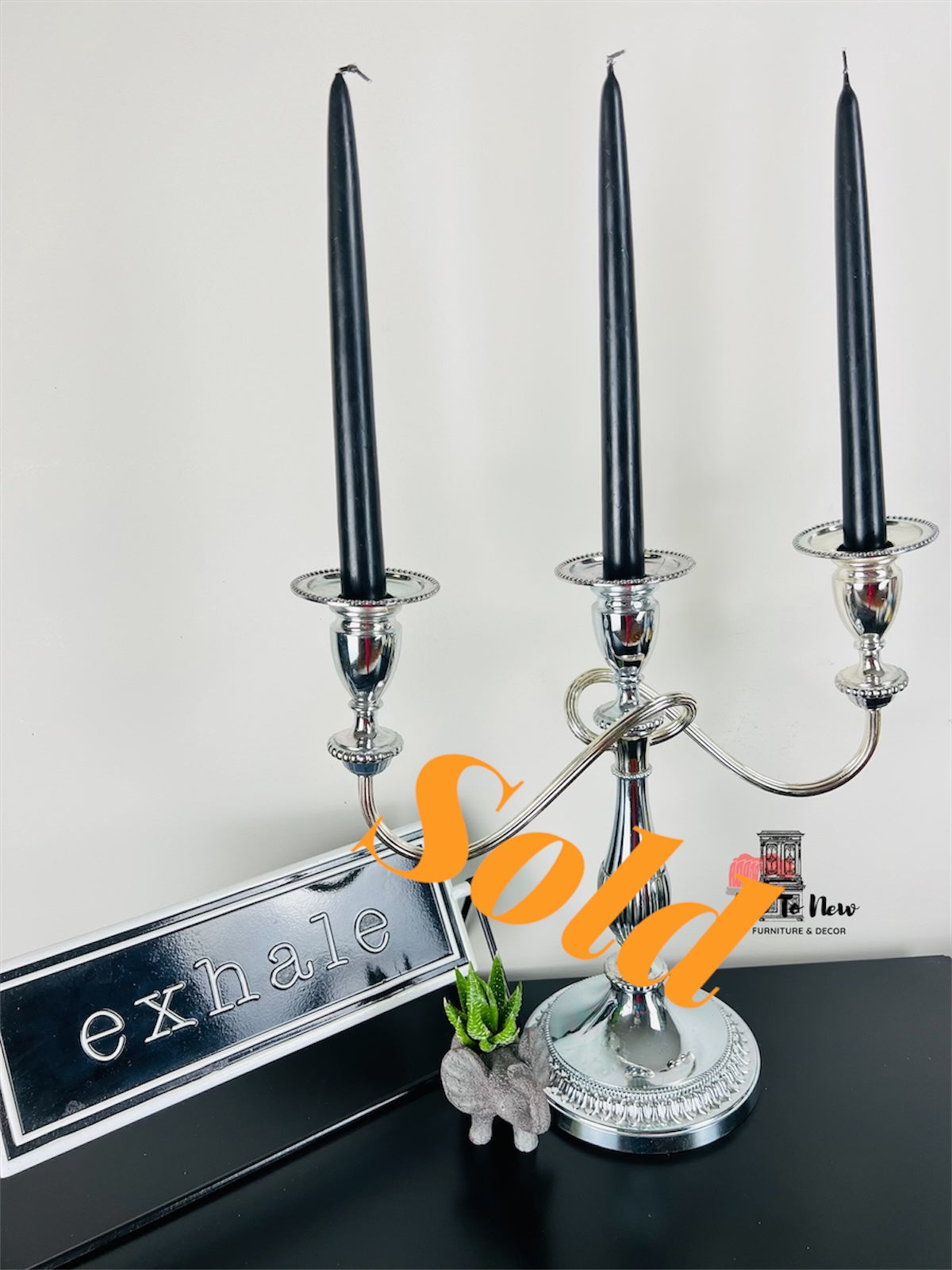 Vintage polished silver twisted arm candelabra in pristine condition. This piece has sparkle and reflects the beauty of its surroundings. This unit can hold candles up to 2 cm in diameter. A wonderful way to add elegance and charm to a modern or traditional home.