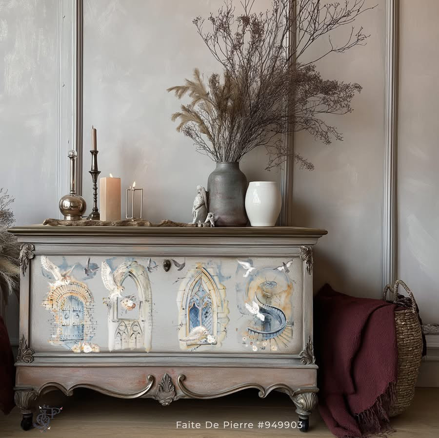 Hokus Pokus Decor transfers are highly detailed transfers. They can be used on wood, painted furniture, ceramics, glass, mirrors, tiles and many other smooth surfaces. Using the supplied transfer tool and following the instruction provided the pressure sensitive printed design transfers can be rubbed onto any smooth surface such as a piece of furniture to decorate and enhance- the end result will be your creative piece of art.