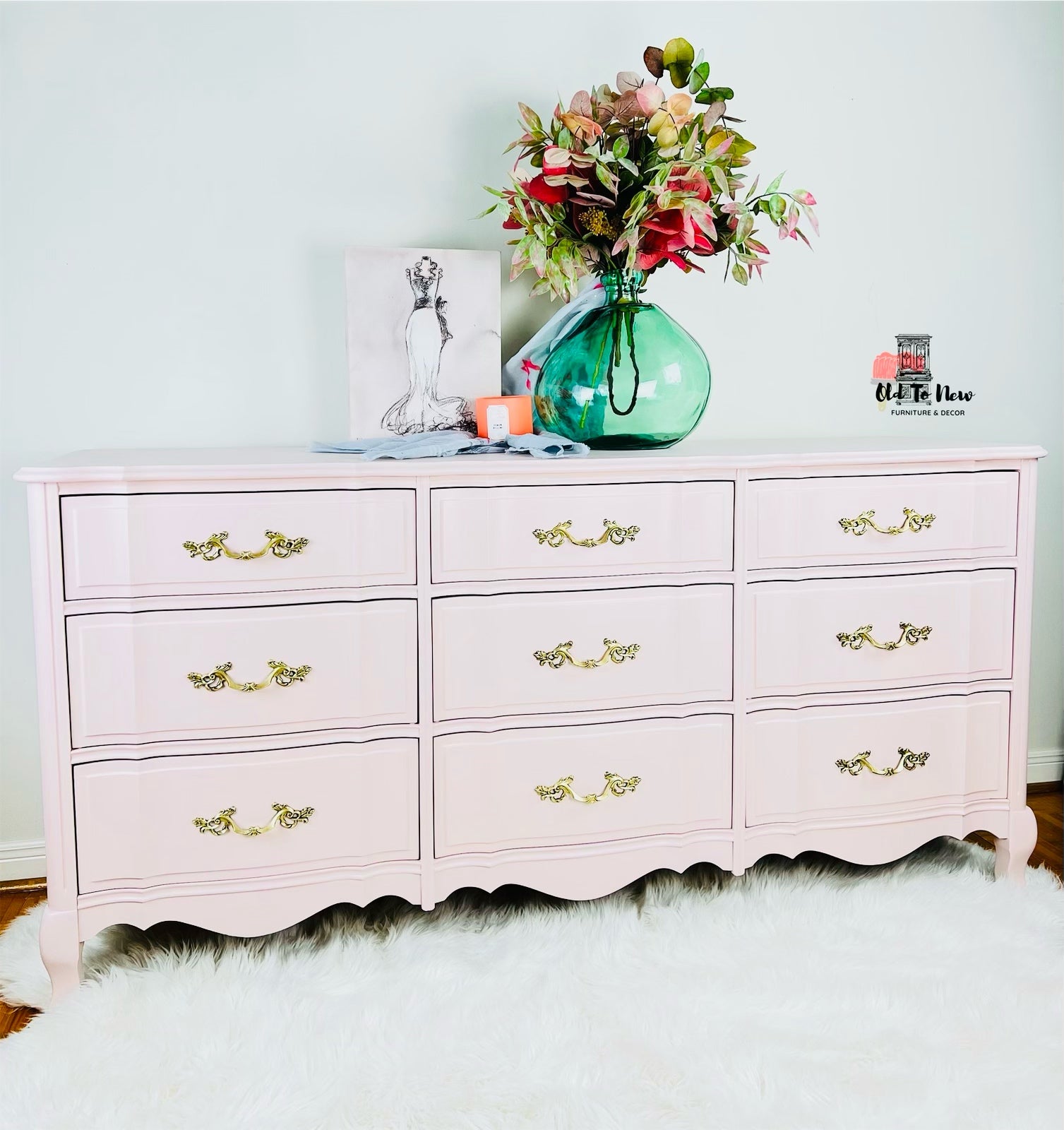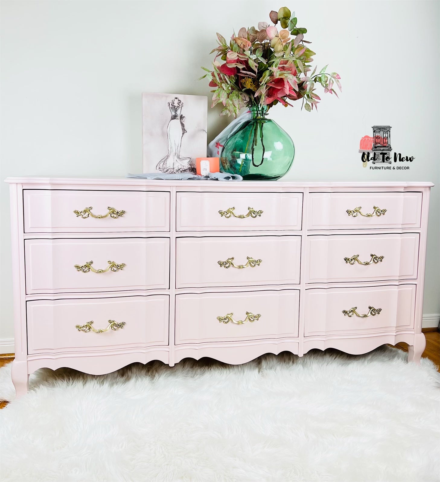 Gorgeous 9 Drawer Malcolm Dresser Painted Delicate Pink With Fusion Mineral Paint