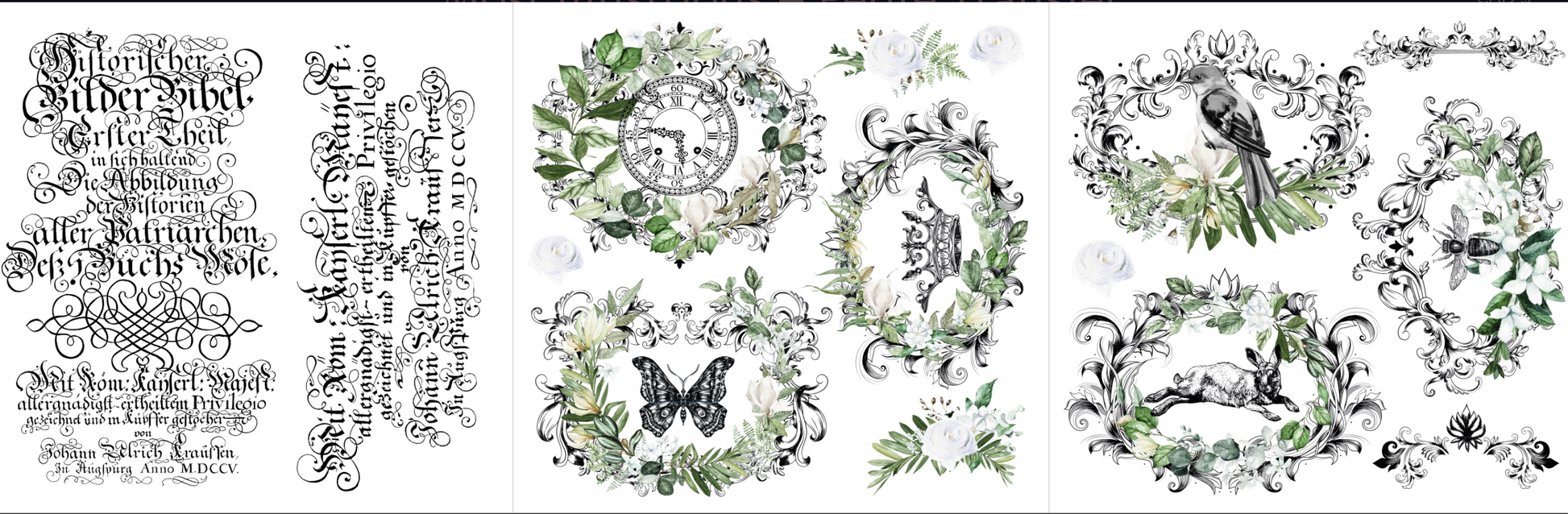 Hokus Pokus Petite Decor Transfers are highly-detailed and can be used on wood, painted furniture, glass, mirrors and many other smooth surfaces.