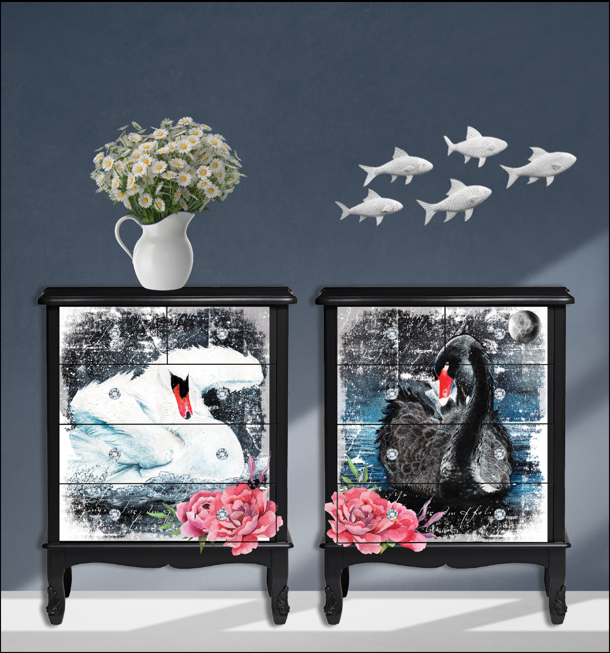 Hokus Pokus Decor transfers are highly detailed transfers. They can be used on wood, painted furniture, ceramics, glass, mirrors, tiles and many other smooth surfaces. Using the supplied transfer tool and following the instruction provided the pressure sensitive printed design transfers can be rubbed onto any smooth surface such as a piece of furniture to decorate and enhance- the end result will be your creative piece of art.