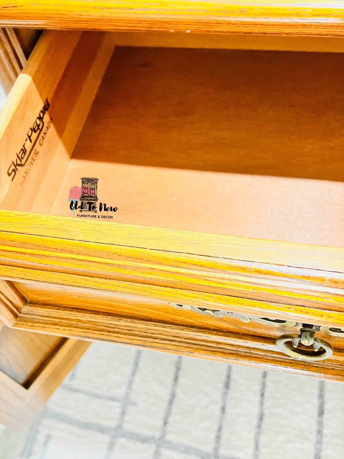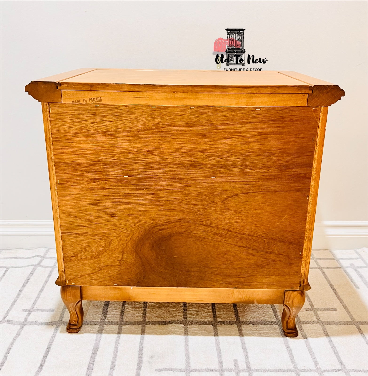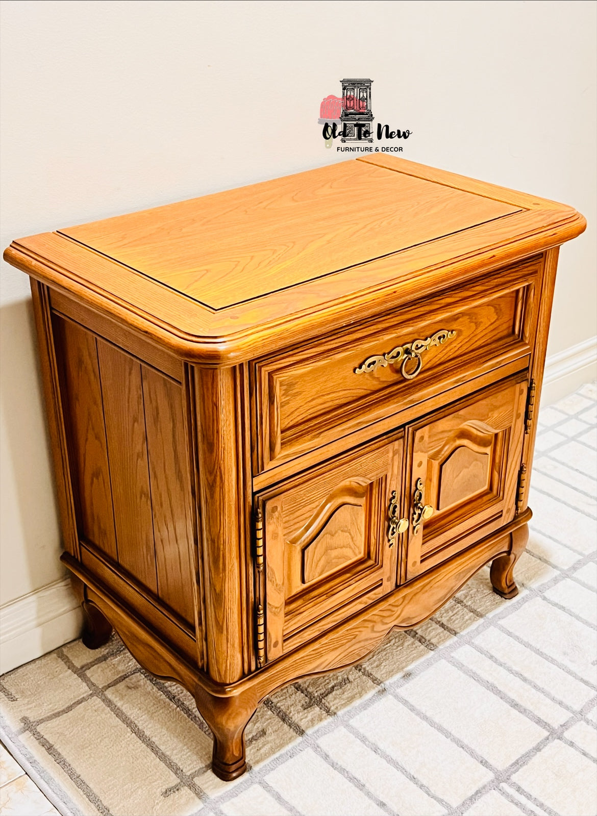These gorgeous French Provincial end tables are exquisite with the most beautiful details; 1 top level full size sliding drawer and a bottom level double door storage opens up to abundant storage. Both available to be customized in your choice of paint color. The cost to refinish the set of these tables is $860; one color- addition charge for more design elements. If you'd like to make these yours please message us.