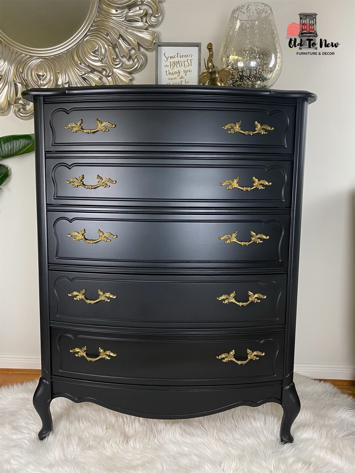 Hello lady in the sleek black dress! ; A sophisticated timeless armoire painted in the gorgeous color Coal Black by Fusion Mineral Paint. This piece was eloquently designed with smooth curves becoming an elegant and attractive silhouette when painted this stinking black color, she's a gem!.